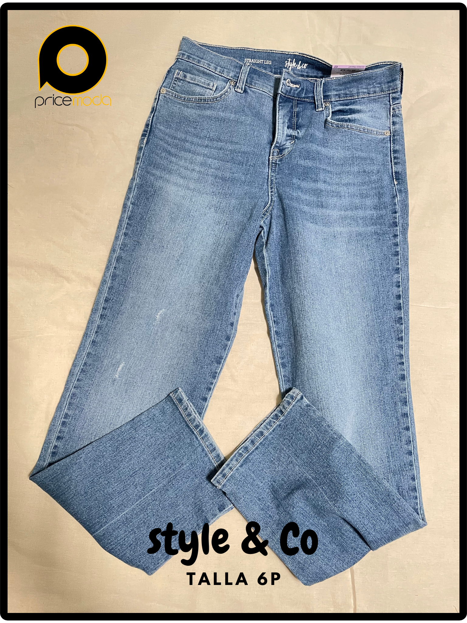 Pantalón de mezclilla, straight leg, color azul deslavado marca Style & Co en talla 6P