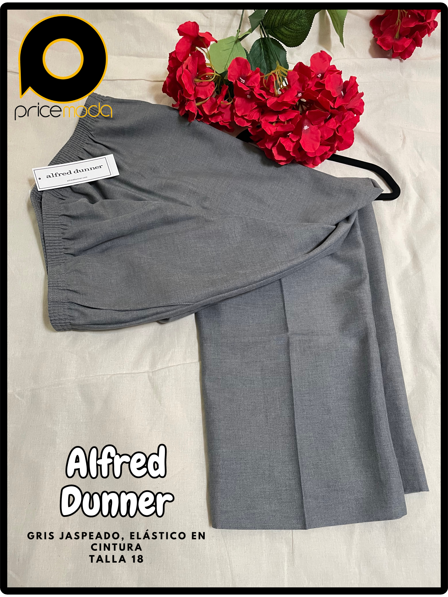 Pantalón de vestir, con elástico en cintura, color gris jaspead marca Alfred Dunner en talla 18