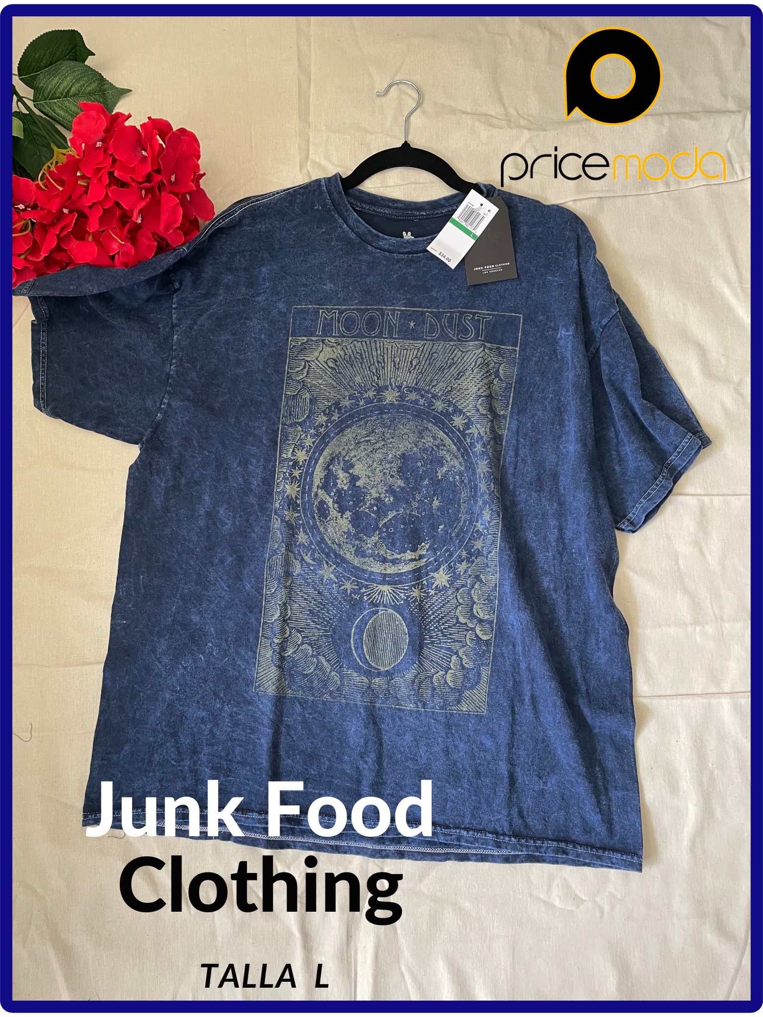 Playera manga corta, amplia ,Color: azul marino, con dibujo ,Talla: L , Marca : JUNK FOOD CLOTHING